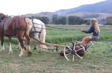 Girlpower…..Gras mähen mit Pferden