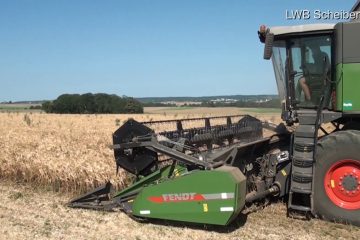 OeserPictures — Eine Lupinen Ernte von 2024 mit Fendt Mähdrescher 6335 CPL beim Landwirtschaftsbetrieb Scheibenpflug. Ein Fendt Traktor Vario 820 transportierte den Ertrag mit einem Anhänger von Lomma ab.