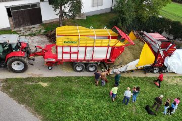 Mein Mais kommt in die Siloschlauchpresse. Johann Reisinger