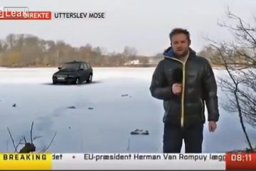 Reporter parkt seinen Wagen und Berichte