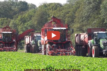 2022 Zuckerrübenernte mit zwei Grimme Rexor Rodern 6200/6300 von Agrarservice Steinholz, für die Bunkerleerung sind zwei Fendt 824 mit Krampe Kippern im Einsatz — Landtechnik MV – Agricultural Videos