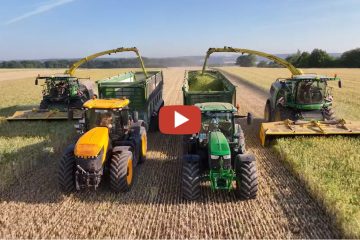 JP Agrar – Lohnunternehmen Köhl GPS Ernte mit mächtig Schlagkraft! 2x John Deere 9900i, Diverse Tridem Abfahrer und ein Case Quadrac, sowie ein John Deere 9RX auf dem Silo