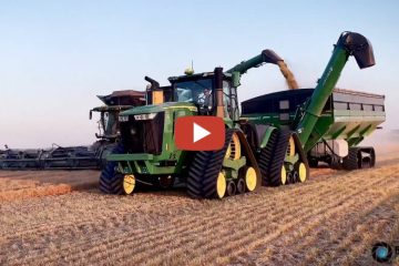 SASKATCHEWAN KANADA — 4x John Deere 9x-1000 Mähdrescher und 2 John Deere 9RX + Brent Überladewagen. Linsen dreschen 2023