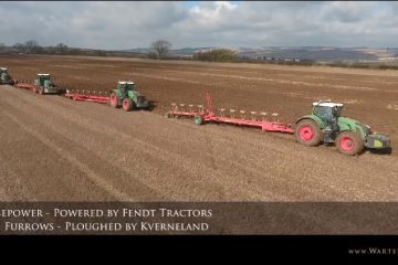 Fünf Traktoren pflügen Zusammen Fendt und Kverneland