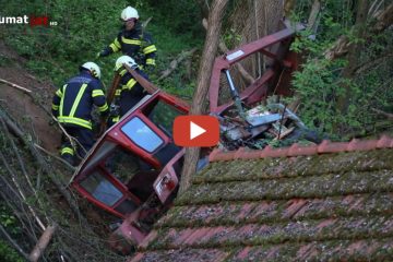 In Niederthalheim (Bezirk Vöcklabruck) ist ein Traktor in einem Waldstück über eine steile Böschung abgestürzt..laumat.at media e.U..