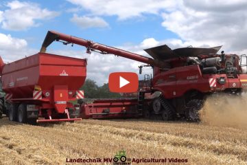 AgrarBlick — Getreideernte Highlight 2023 — Ersteinsatz & einmalig – ein absolutes Highlight – zwei Generationen treffen aufeinander – Claas Challenger CH 85 E Raupe mit Annaburger Überladewagen HTS 34.16 – ganz in weiß / schwarz zusammen mit dem Claas Lexion 7600 Terra Trac Mähdrescher (Raupenantrieb)