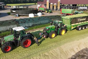 Gezeigt wird die Maisernte beim Milchviehbetrieb Hanneken „Rubbacks“ in Bockhorst (Emsland) am 18.09.2024. Im Einsatz ist das Lohnunternehmen Gerdes GmbH aus Börger mit vier Abfuhrgespannen. Krone BiG X 780 OptiMaize. Deutz, Fendt und John Deere Traktoren. Agrar Ems-Leer