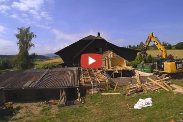 Beat Risi AG beim Teilabbruch mit Cat 323 beim Baggerfahrer und Mähdrescherfahrer zu hause.– feruontour