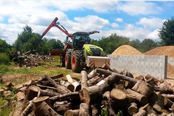 Claas Xerion 4000 beim Holzschreddern und Fendt-Schlepper (724,714 und 308) beim Abfahren — Fendt820