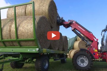 Weidemann Teleskopradlader 5080T beim Laden von Rundballen und der Straßenfahrt mit Hänger.