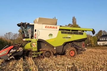 Landtechnikvideos Weyhe — Das Lohnunternehmen M—D aus Kirchlinteln unterstützt das Lohnunternehmen Harries Emtinghausen GmbH – Lexion 760 TerraTrac – New Holland T7 225 mit einem Fliegl Überladewagen