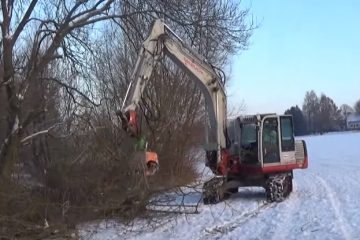 Lohnunternehmen Mikus – Baumfällarbeiten und Hecke schneiden mit Bagger. – Fridolin1983-
