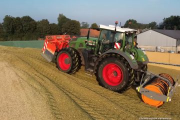 Agrarlohn Müritz beim ausbringen von Gülle mit einem Claas Xerion 4000 Saddle Trac mit 30.5m³ Faßauflieger und 36m. Vogelsang Schleppschlauchverteiler. Als Zubringer sind verschiedene LKW mit Fassaufliegern im Einsatz — Landtechnik MV – Agricultural Videos