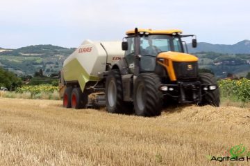 agropictures — Das Lohnunternehmen Pittl aus Tirol ist bekannt für seine violetten Steyr Traktoren – Maisernte extrem in den Bergen. Claas Jaguar am Steilhang