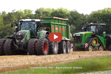 Dung streuen mit einem Fendt 936 auf Zwillingen, beladen mit Liebherr 550 Xpower Radlader. Eingearbeitet mit John Deere 9620RX – Landtechnik MV – Agricultural Videos