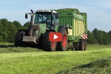 Bürli Trocknungsanlage mit 4 Ladewagen bei der Grasernte. Im Einsatz John Deere, Case, Pöttinger und Krone. feruontour