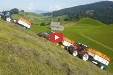 *SchweizerLandtechnik — Lenktriebachsen: Dreikampf im Steilhang – Anhänger mit Lenktriebachsen bieten sich für die Bergmechanisierung als Alternative zum Transporter an. Technisch unterscheiden sich diese Anhänger durch ihren Antrieb.