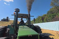 Fütterung von Rindern in Amerika mit einem Trioliet-Futtermischer und Deutz-Traktoren. Mike Less – Landhand Mike