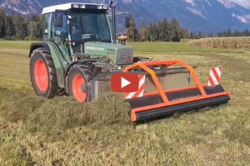 *Fendt 307e mit Eigenbau Pickup-Bandschwader – Der Bandschwader benötigt ca. 40l/min. Geschwadet wurde Heu vom 4. Schnitt. — Daniel