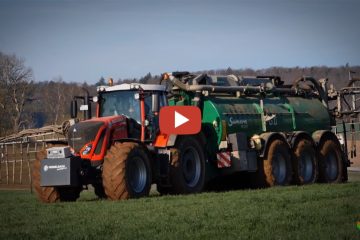 Rhöner Landtechnik — Gülleausbringung mit einem roten Fendt 930 Vario durch das Lohnunternehmen Hesselbach. Mehrere Agrotrucks dienten als Zubringer.