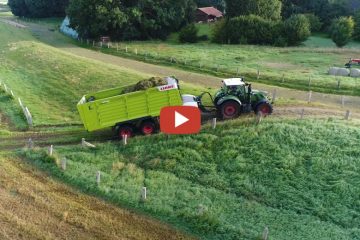 Not Grasentsorgung aufgrund eines verheerenden Hochwassers im Juli 2017. Fendt 718 Vario und Claas Cargos