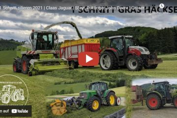 *1 Schnitt Grashäckseln 2021 mit einem Claas Jaguar Feldhäcksler und diversen Abfuhrgespanne und Traktoren der Marken Claas, Steyr, John Deere, Pöttinger uvm..– Landwirtschaftliche Maschinen im Einsatz