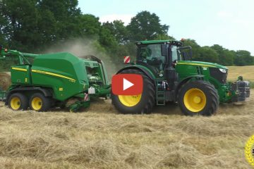 Agrar Paparazzi — Das LU Bender ist hier beim Heu – pressen zu sehen mit einer John Deere Presse C 451 R die hier gezogen wird von einem John Deere 6250 R.