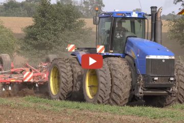 AgrarBlick — Bodenbearbeitung 2019 Pure Schlagkraft – Knicklenker Schlepper vom Typ New Holland TJ430 mit Zwillingsreifen und ein Horsch Terrano
