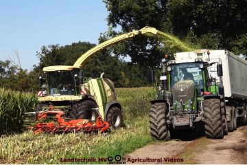 Lu. Wilkens mit einem Krone Big X 1100 beim Maishäckseln, für den Transport sind verschiedene Fendt und Case traktoren im Einsatz. Landtechnik MV – Agricultural Videos