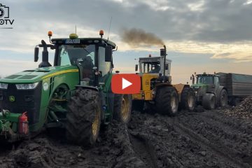 Rubenernte in Ungarn…..JOHN DEERE Traktoren im Schlamm beim Rübentransport