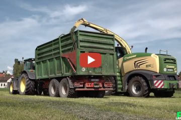 Landtechnik FHD — 1.Schnitt 2024 – Mit einem Krone BiG X 630 wurde der 1.Schnitt 2024 gehäckselt. Abgefahren zu einer BGA wurde mit John Deere 6250R und einem John Deere 6190R.