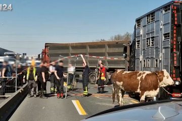 – VN24 – Tier-Transport LKW verliert Rinder bei Unfall auf der Autobahn A1 in Unna- 19.03.2025 – Unna/Kamen A1 – Deutschland – Gegen 12:26 Uhr fuhr der 25jährige Fahrer eines Tiertransport LKW auf der Autobahn A1 in nördlicher Fahrtrichtung einem vor ihm etwas langsamer fahrenden LKW auf