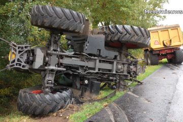 Traktor auf der Seite und Fahrer verletzt. Meternieuws