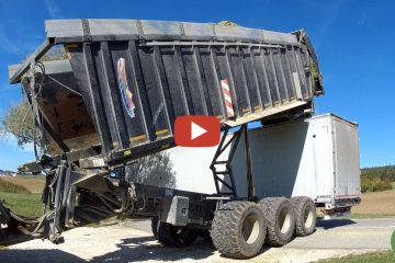 Bucher Ernte Technik mit seinem selbstgebauten Bunkerhäcksler „Chäfer“ im Hang am Maishacken für Göweil Rundballenpresse — feruontour