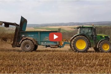 Landwirschaft im Odenwald — Mist streuen 2018 mit John Deere 6215 R und Rolland V2 – 140