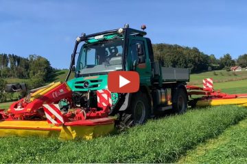 Der neue AGRAR-Unimog — Schlagkräftig mit 300PS, der Unimog U430 – Unimog mit Pöttinger Schmetterling Mähwerk. — Unimog-Suisse