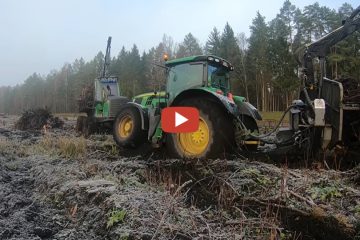 Polen – Festgefahren.. John Deere 6190R, 1210E, 1410 / Forstarbeiten