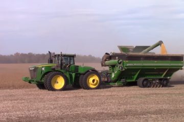 4 John Deere S680 Mähdrescher ernten Sojabohnen USA