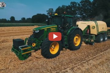 Lohnunternehmen Thomas Upgang aus Vreden mit seinem John Deere 6230R mit angebauter Krone BigPack 1270 VC. — Landwirtschaft aus dem Münsterland