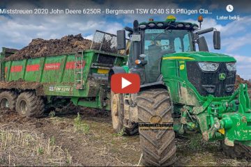 Miststreuen 2020 John Deere 6250R und Bergmann TSW 6244 S die Bodenbearbeitung mit einem Claas 800 Axion 6 Schar – Lemken Diamant 16 Pflug. – LandwirtschaftForstwirtschaft