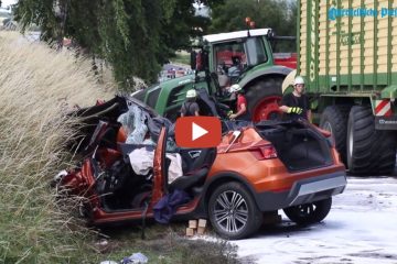 Oberhessische Presse — Ein Auto krachte auf einer Landstraße bei Leidenhofen in einen Schlepper. Der Deatfahrer wurde lebensgefährlich verletzt
