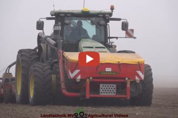 Rübenaussaat 2024 mit einem John Deere 8400 R und einer 12-Reihigen Väderstad Tempo V, ein John Deere 8270 R mit Väderstad Rapid 600 ist für die Bodenbearbeitung im Einsatz, da bei dieser Maschine nur Kreiselegge eingesetzt wird. Ein John Deere 5100 R mit Tankanhänger sorgt für den Dieselnachschub — Landtechnik MV – Agricultural Videos