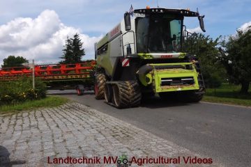 Landtechnik MV – Agricultural Videos — Die lezten Hektar Gerste unter erschwerten Bedingungen mit 6 Claas Lexion 8800, jeweils mit 1380 Convio Schneidwerk. Für die Bunkerleerung sind 3 Fendt 942 mit Hawe 4000 und 5000 ULW im Einsatz. Den Abtransport übernehmen verschiedene Fendt Traktoren mit Krampe Kippern und einige MAN LKW