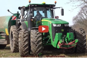 Gülle ausbringen mit einem John Deere 8400 R mit Samson PG 25 und Samson Scheibenegge. Für den Transport ein Fendt 826 und ein New Holland T 7.315 — Landtechnik MV – Agricultural Videos