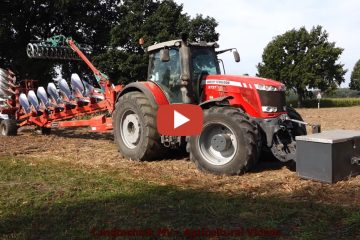 Pflügen mit einem John Deere 8R 410 und einem Massey Ferguson 8737, jeweils mit einem Kverneland PW 10 Schar Pflug. Ein John Deere 8370RT mit Horsch Joker 10RT arbeitet vorweg. — Landtechnik MV – Agricultural Videos
