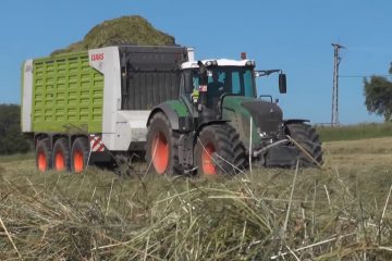Fendt 930, Claas Cargos 9600 Tridem+Deutz Fahr X 720 mit Veenhuis 2200 Combi bei der Grassilageernte — Nordeifel Agrarvideos