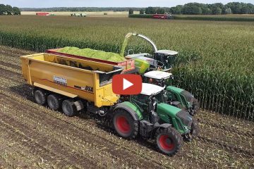 Claas Jaguar 940 beim Maishäckseln 2019. Den Mais zum Silo gebracht haben zwei Fendt Vario 716 und ein 930. — Die Agrarfilmer