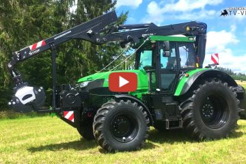 ??( John Deere Traktor)KOTSCHENREUTHER K260R mit EPSILON Ladekran und 10,1 m Reichweite, kurze Bergstütze und Klemmbank