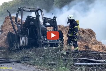 Jülich: Traktor mit Strohanhänger in Vollbrand. Ein LU. hat den beladenen Strohanhänger mit zwei Radladern geleert — blaulichtdoku_ac
