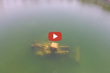 Phantom Drone fliegt über Überflutete Steinbruch